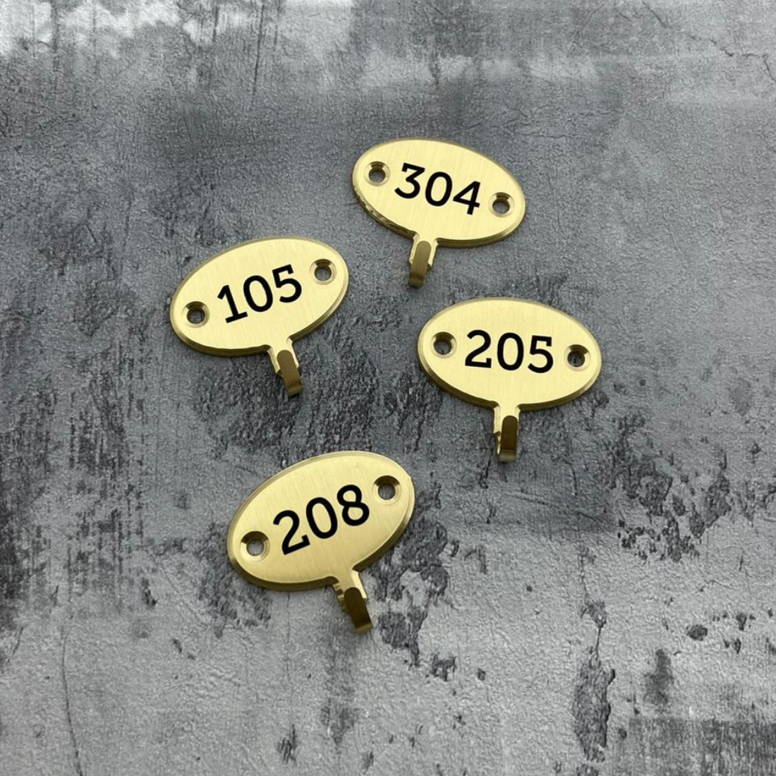 Het ovale sleutelhaakje is vervaardigd uit hoogwaardig messing en heeft een luxe uitstraling. Door het haakje te personaliseren met cijfers, letters of een combinatie daarvan, kun je gemakkelijk onderscheid maken tussen verschillende sleutels in bijvoorbeeld hotels, bed & breakfasts en boetiekhotels, maar ook in de horeca.