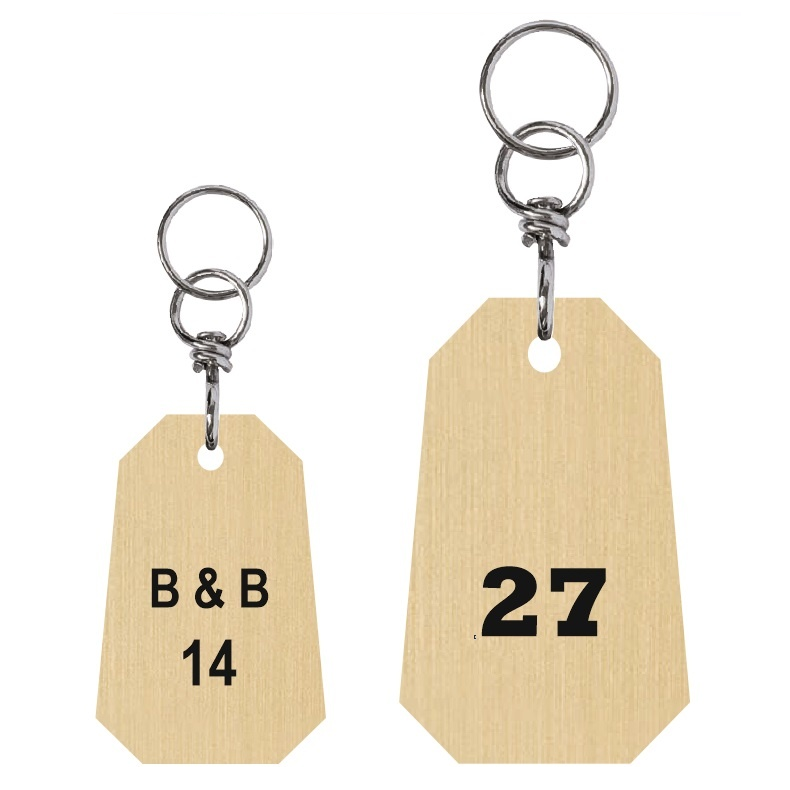 Gesatineerde Messing achthoekige Hotelsleutelhanger AREANE met wartel