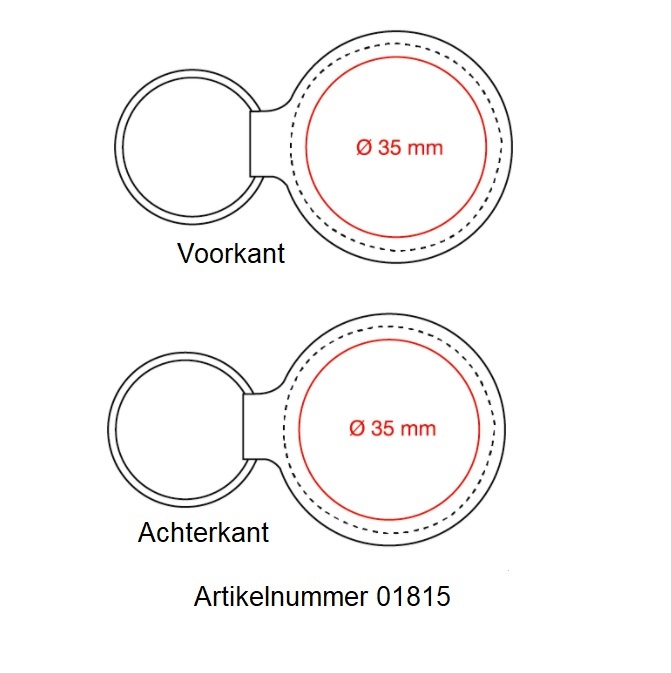 Leren of Kunstleren sleutelhangers Ø45x75mm met een brandlogo naar eigen ontwerp en een nummering of naam naar wens.