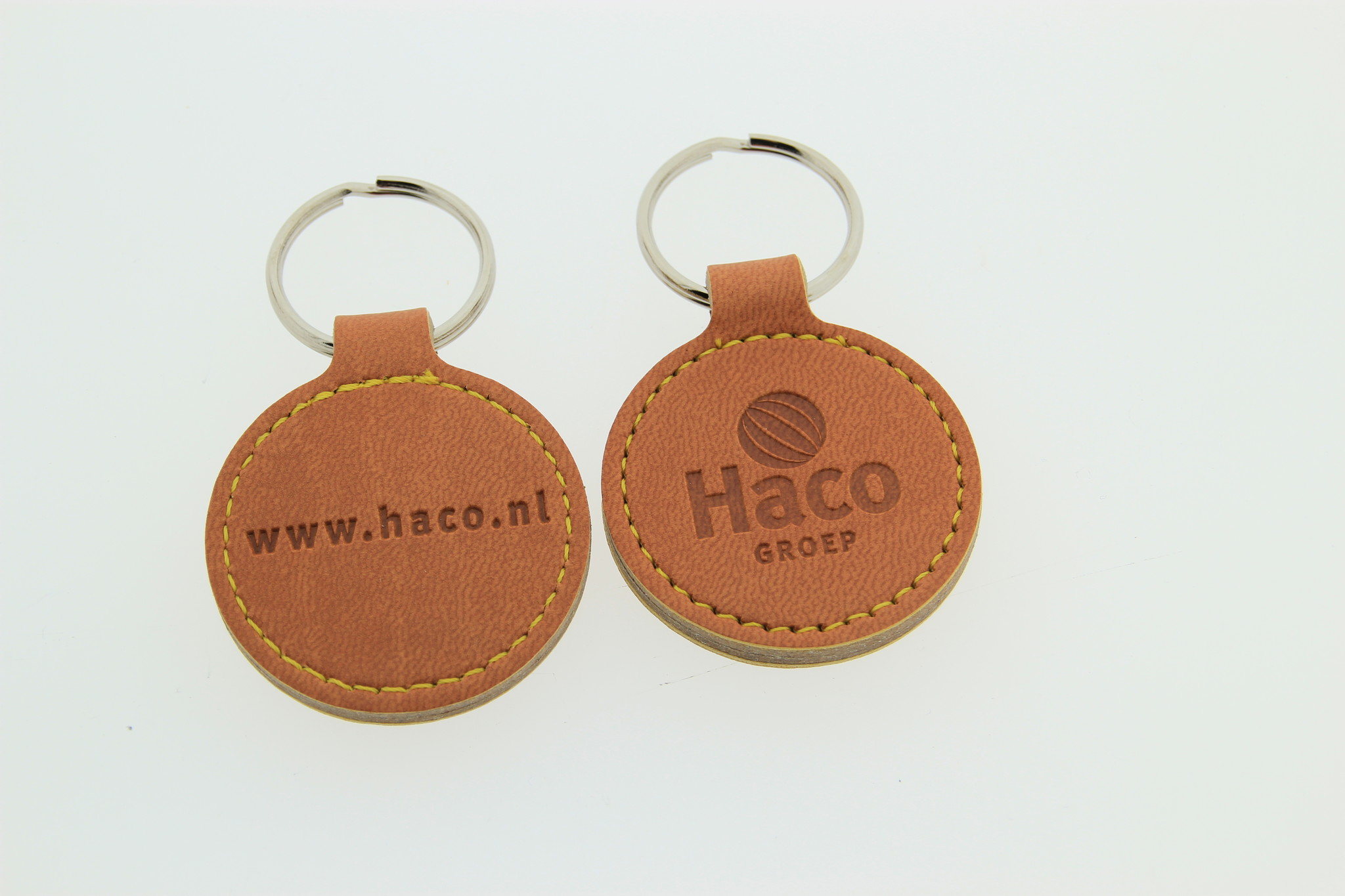 Sleutelhanger van (Kunst)leer met logo en een opdruk