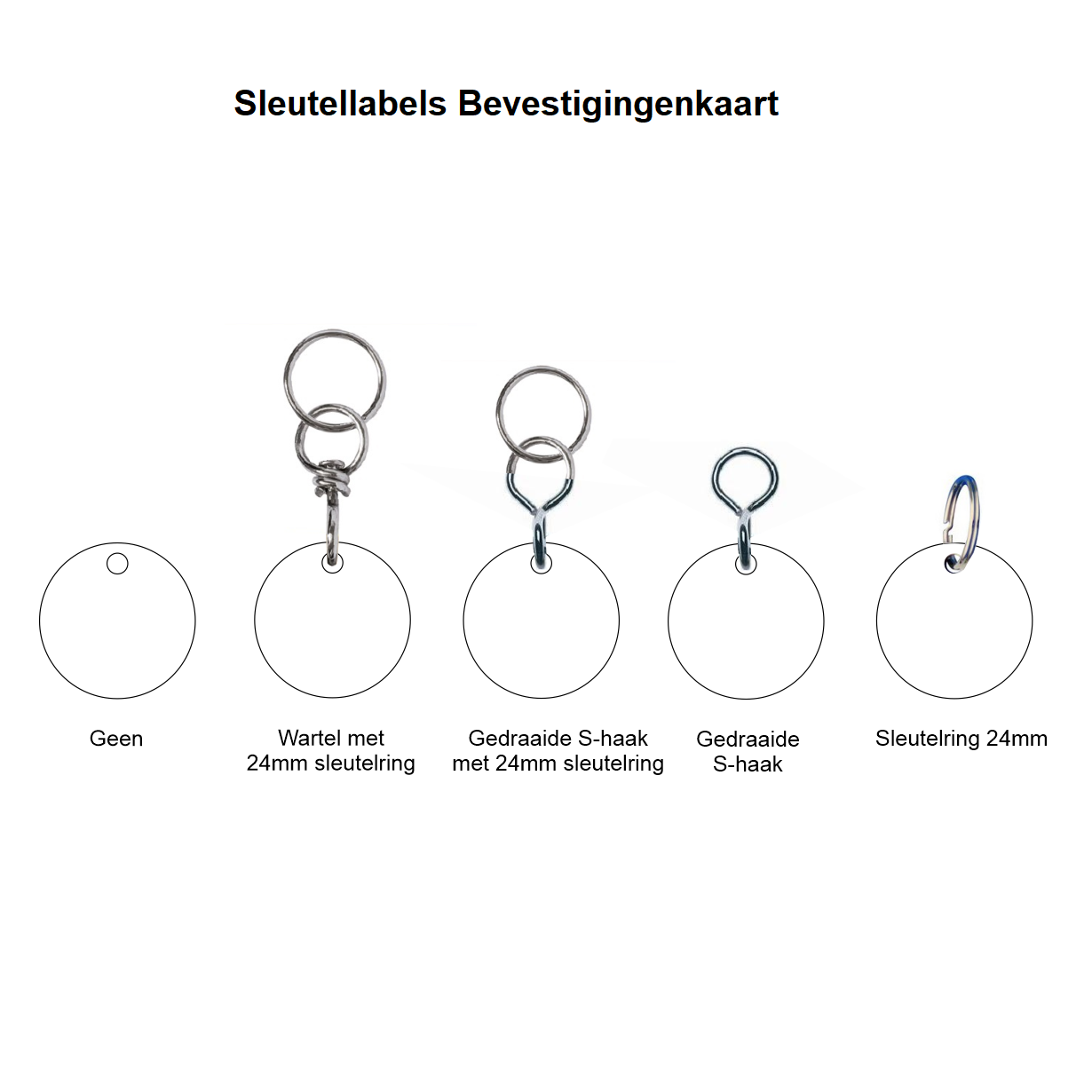 Voor bevestigingen, zoals sleutelringen is de keuze groot. Wij leveren ringen ongemonteerd mee, maar op verzoek kunnen wij deze ook tegen een meerprijs voor u bevestigen.