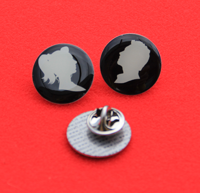 Ruime hoeveelheid speldjes met silhouet van man of vrouw. Bevestiging door middel van vlindersluiting. Opruimprijs €0,30 per stuk. Speldje is 20mm rond.