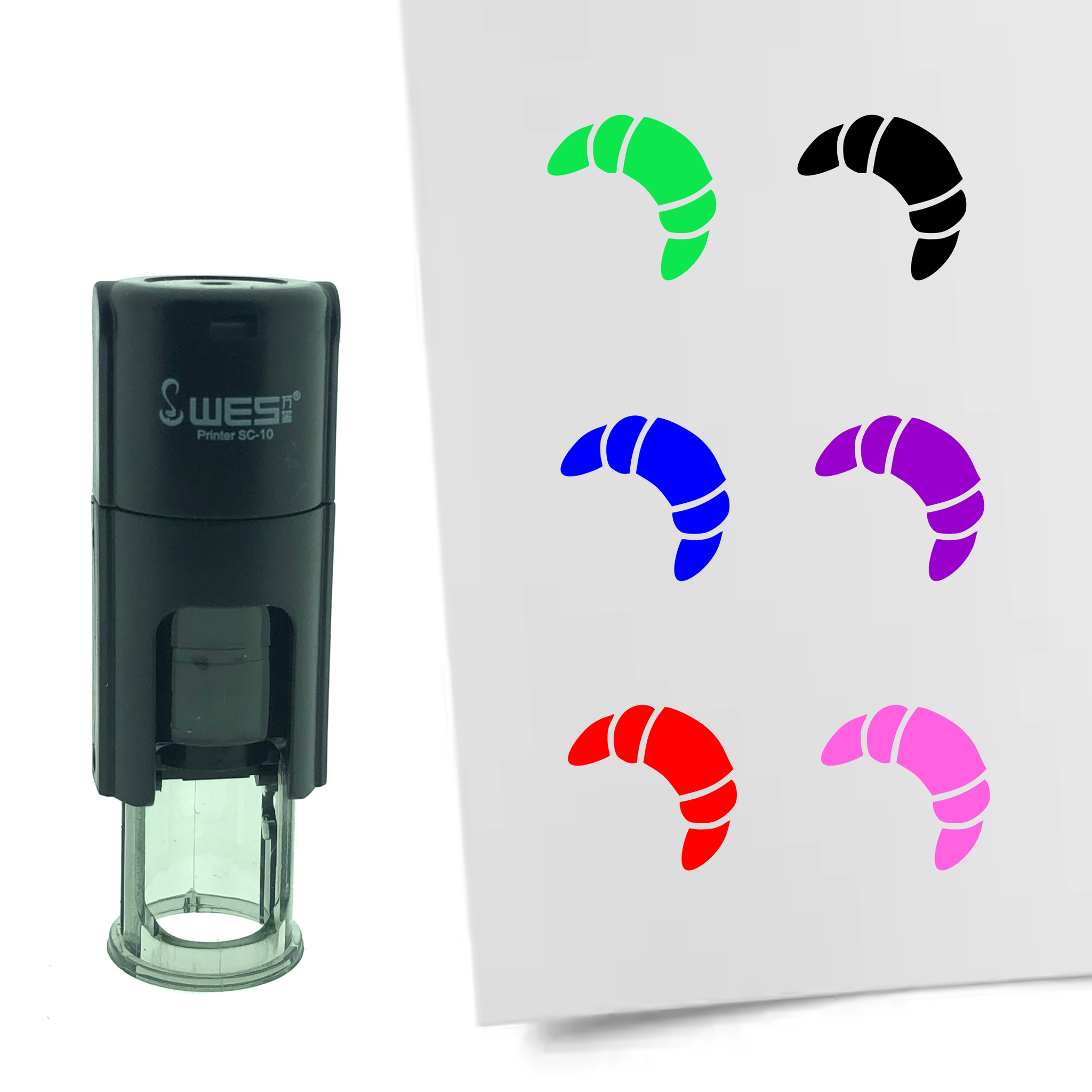 Stempel of stempeltje van 1cm rond in de vorm van een croissant. Stempel kan gebruikt worden voor stempelen van spaarkaarten of stempelkaarten. Stempel bevat een inktkussen dus geen extern inktkussen nodig.