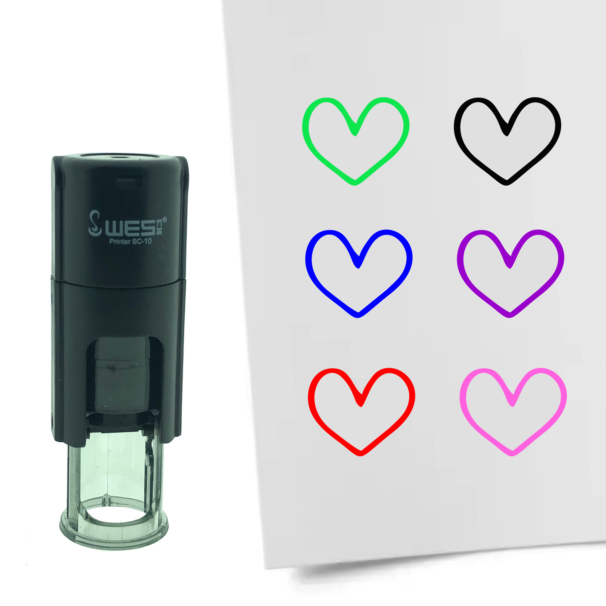 Stempel of stempeltje van 1cm rond in de vorm van een open hart of hartje. Stempel kan gebruikt worden voor stempelen van spaarkaarten of stempelkaarten. Stempel bevat een inktkussen dus geen extern inktkussen nodig.