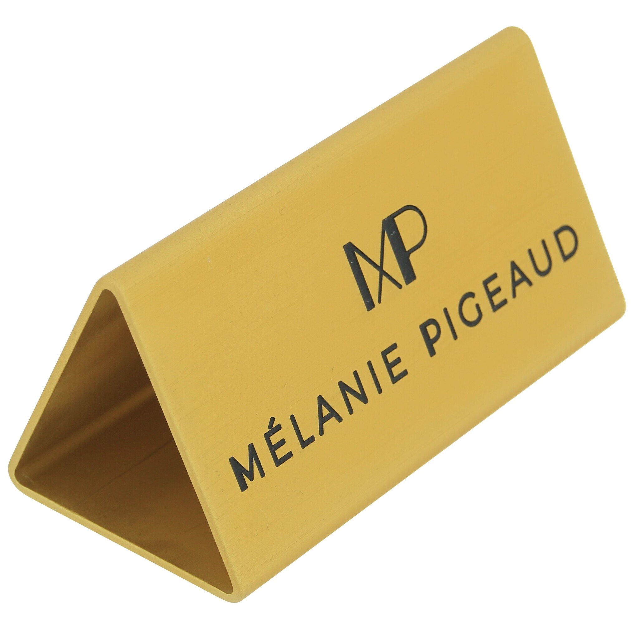 Tafelbordje Cody van goudkleurig aluminium met eigen ontwerp 100x55mm - per 1 stuk