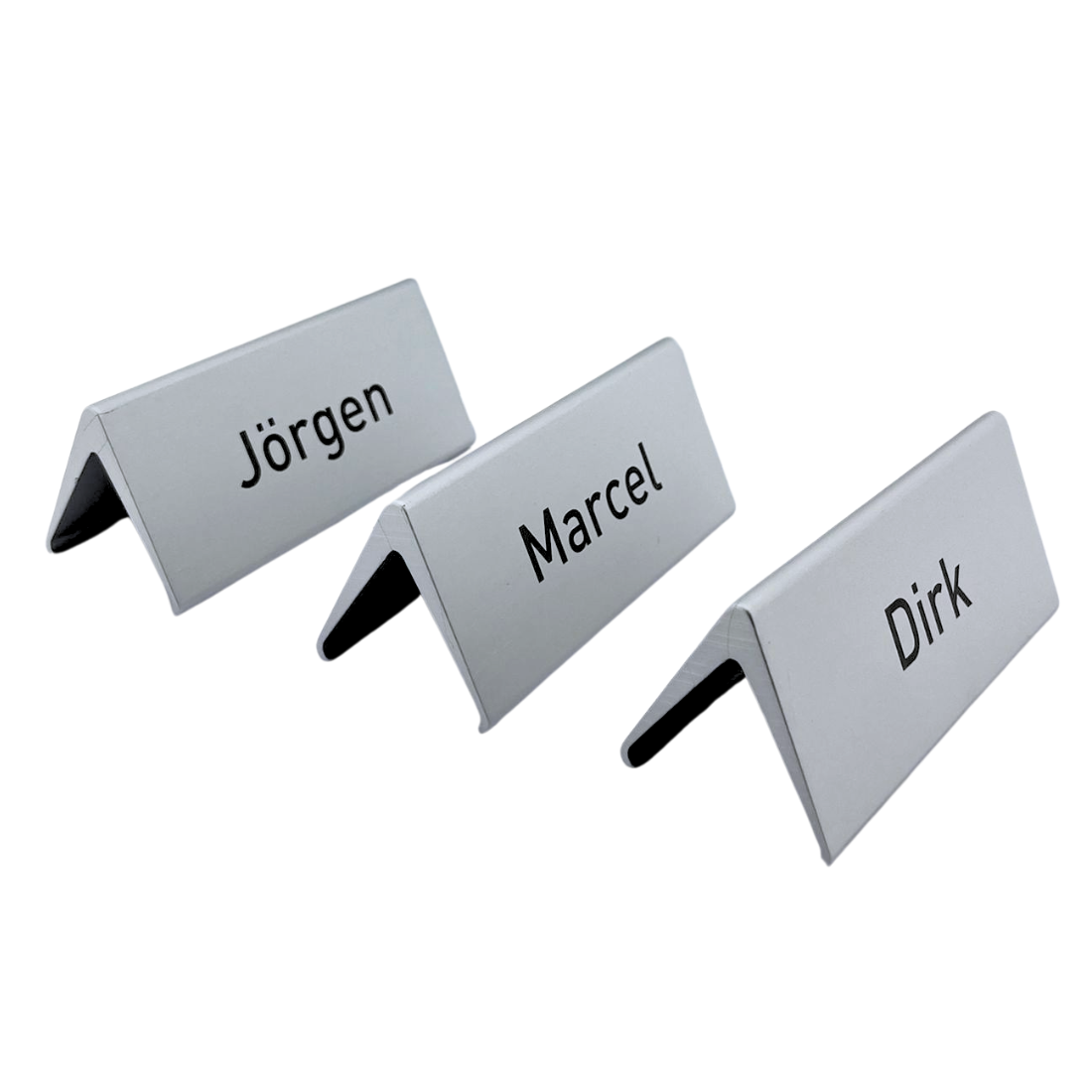Tafelbordje Elegant van zilverkleurig aluminium met eigen ontwerp 120x55mm - per 1 stuk