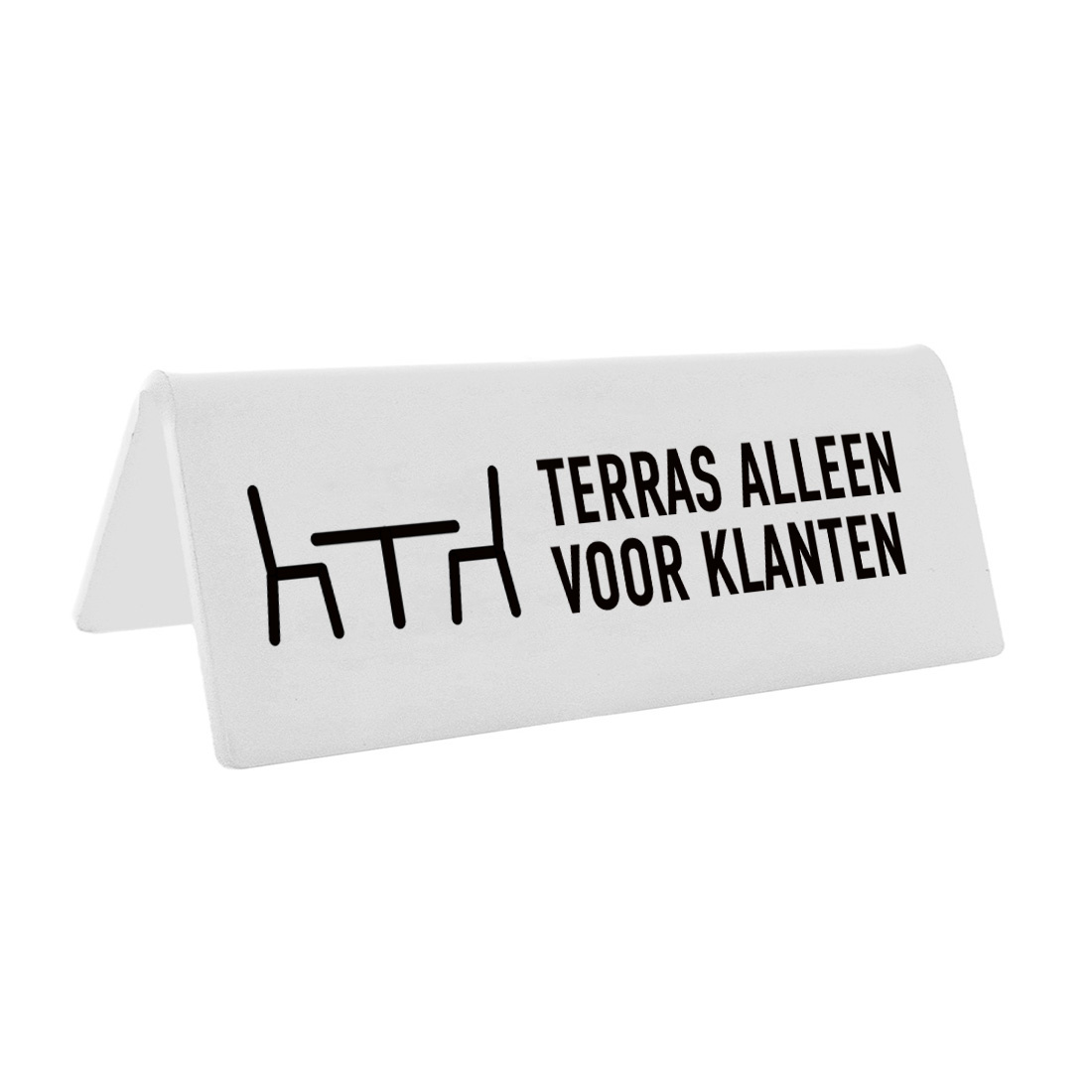 Met dit bordje maak je duidelijk dat het terras alleen bestemd is voor (betalende) klanten. Handig voor allerlei horecagelegenheden met een terras.