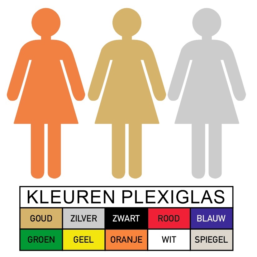 De symboolbordjes voor de toiletten zijn verkrijgbaar in diverse standaard ontwerpen en uitvoeringen, waarbij ook een keuze is qua maatvoering, maar ook voor de gewenste kleur plexiglas.