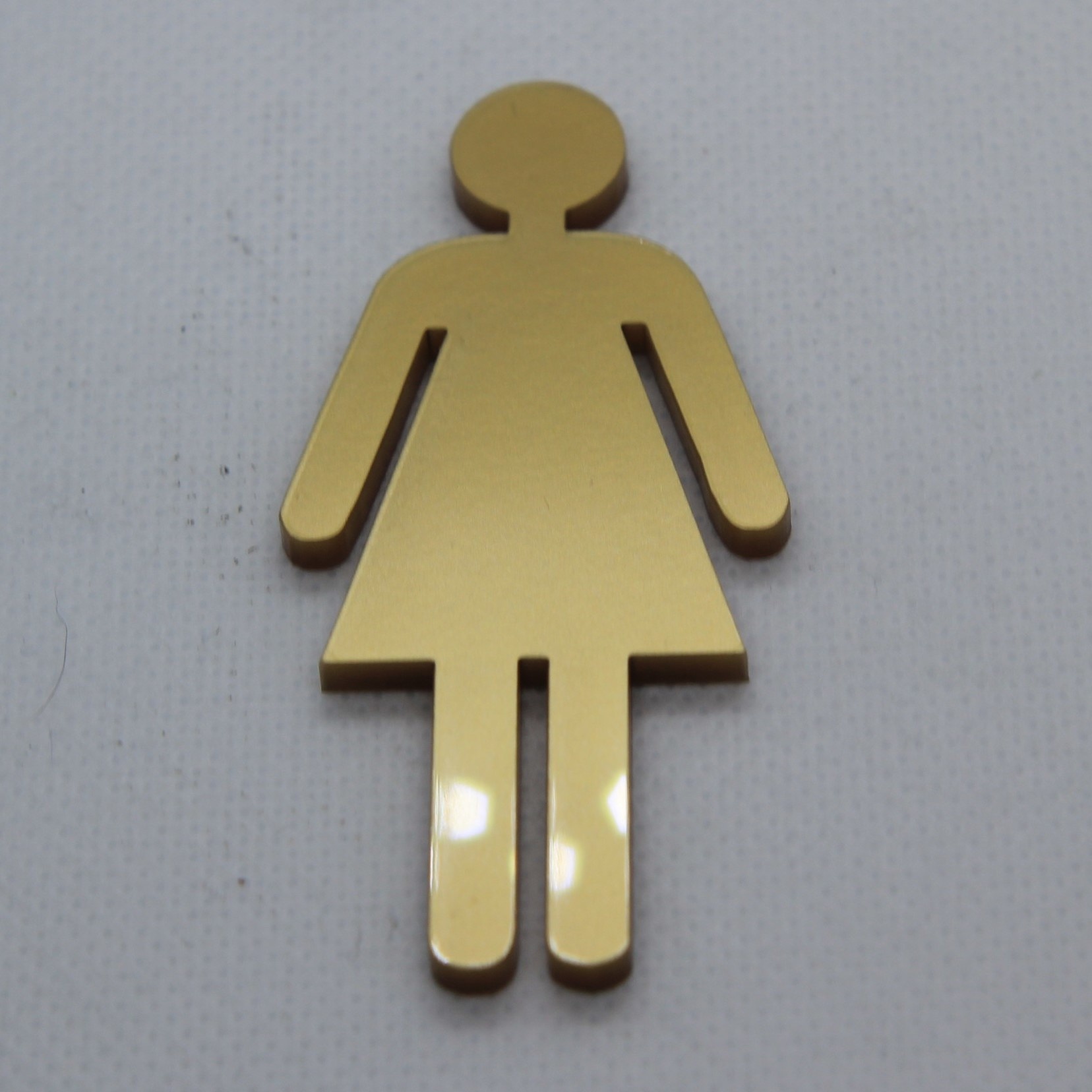 Hier bieden wij als toiletbordje het pictogram "DAMES" aan, voor dames toiletten en dames kleedkamers. Het toiletsymbool is volledig uitgesneden in plexiglas eventueel voorzien van Ø3½mm of grotere gaatjes of naar wens dubbelzijdig tape. Indien je zelf een ontwerp gemaakt hebt, dan voeren we dat ook graag voor je uit, maar kies daarvoor het eigen ontwerp toiletbordje in plexiglas. Laat wel de maatvoering weten, alsmede het aantal toiletbordjes dat je zou willen bestellen.