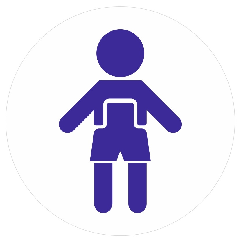 Een toilet bordje voor op de deur van een herentoilet in een symbolisch jongens ontwerp, een echt iconisch toiletbordje. Op het toiletbordje is de afbeelding geplaatst van een jeugdig uitziende man met lederhose of tuinbroek, zodat het echt duidelijk wordt dat het om het heren toilet of jongenstoilet gaat.