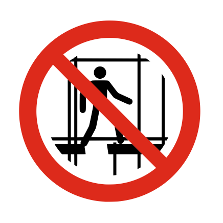 Bordje volgens ISO 7010 verbodspictogram p025: 'Verboden een onafgewerkte stelling te gebruiken'
