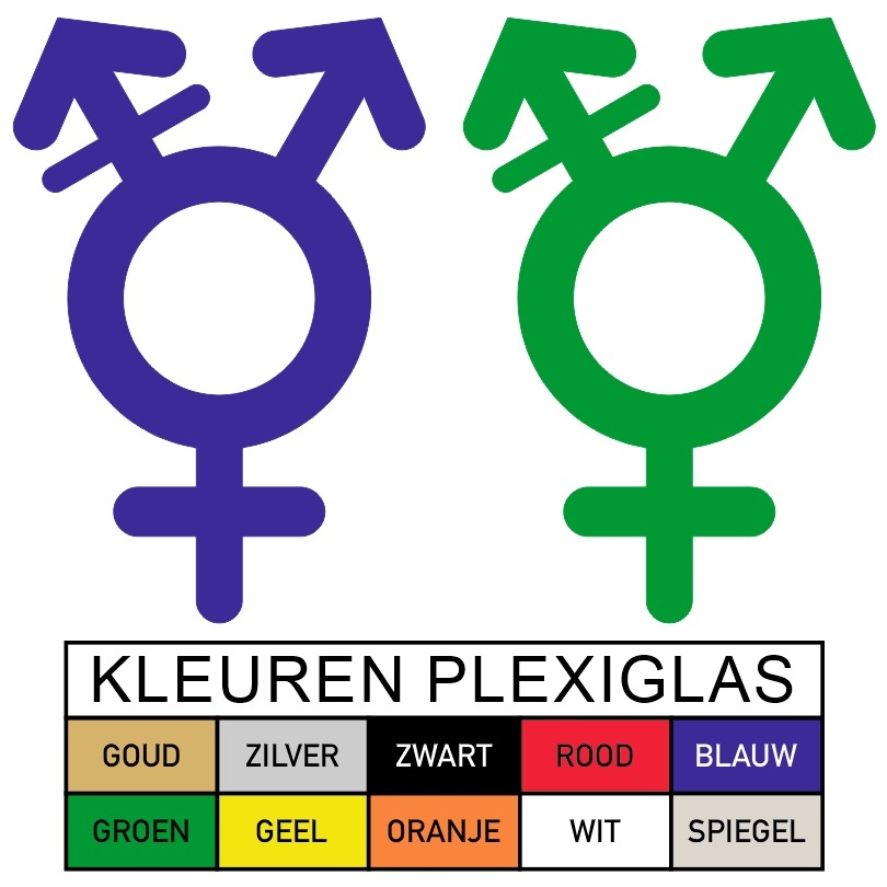 Hier bieden wij als toiletbordje het pictogram "genderneutraal" aan, voor gemeenschappelijke toiletten. Het toiletsymbool is volledig uitgesneden in plexiglas eventueel voorzien van Ø3½mm gaatjes of naar wens dubbelzijdig tape. Indien je zelf een ontwerp gemaakt hebt, dan voeren we dat ook graag voor je uit, maar kies daarvoor het eigen ontwerp toiletbordje in plexiglas. Laat wel de maatvoering weten, alsmede het aantal toiletbordjes dat je zou willen bestellen.