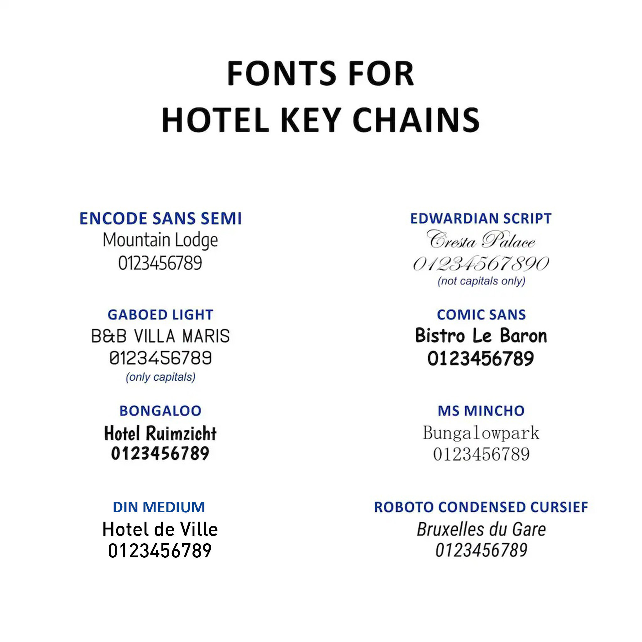 Als je een nummerreeks op de sleutelhanger wilt laten graveren, dan kun je dit aangeven bovenaan de pagina. Bijvoorbeeld door nummer 1 t/m 12, 14 t/m 37 etc. te noteren. Het is niet nodig om per nummer een kunststof hotel sleutelhanger te bestellen. Ook is het mogelijk om een Excel-bestand te sturen met in kolom A alle gewenste nummeringen onder elkaar.