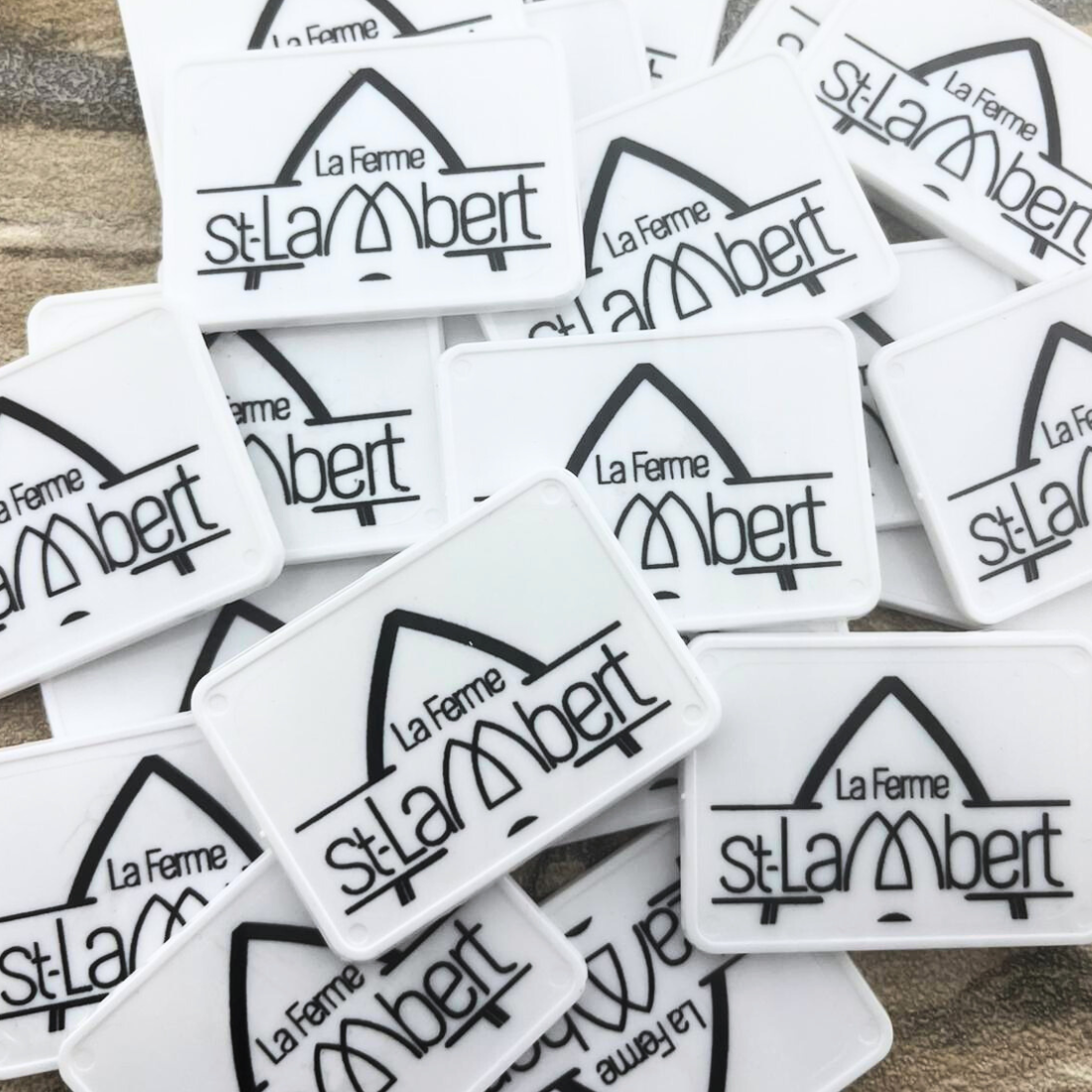 Witte plastic rechthoek munten 50 x 35 mm met jouw eigen ontwerp - per 100 stuks